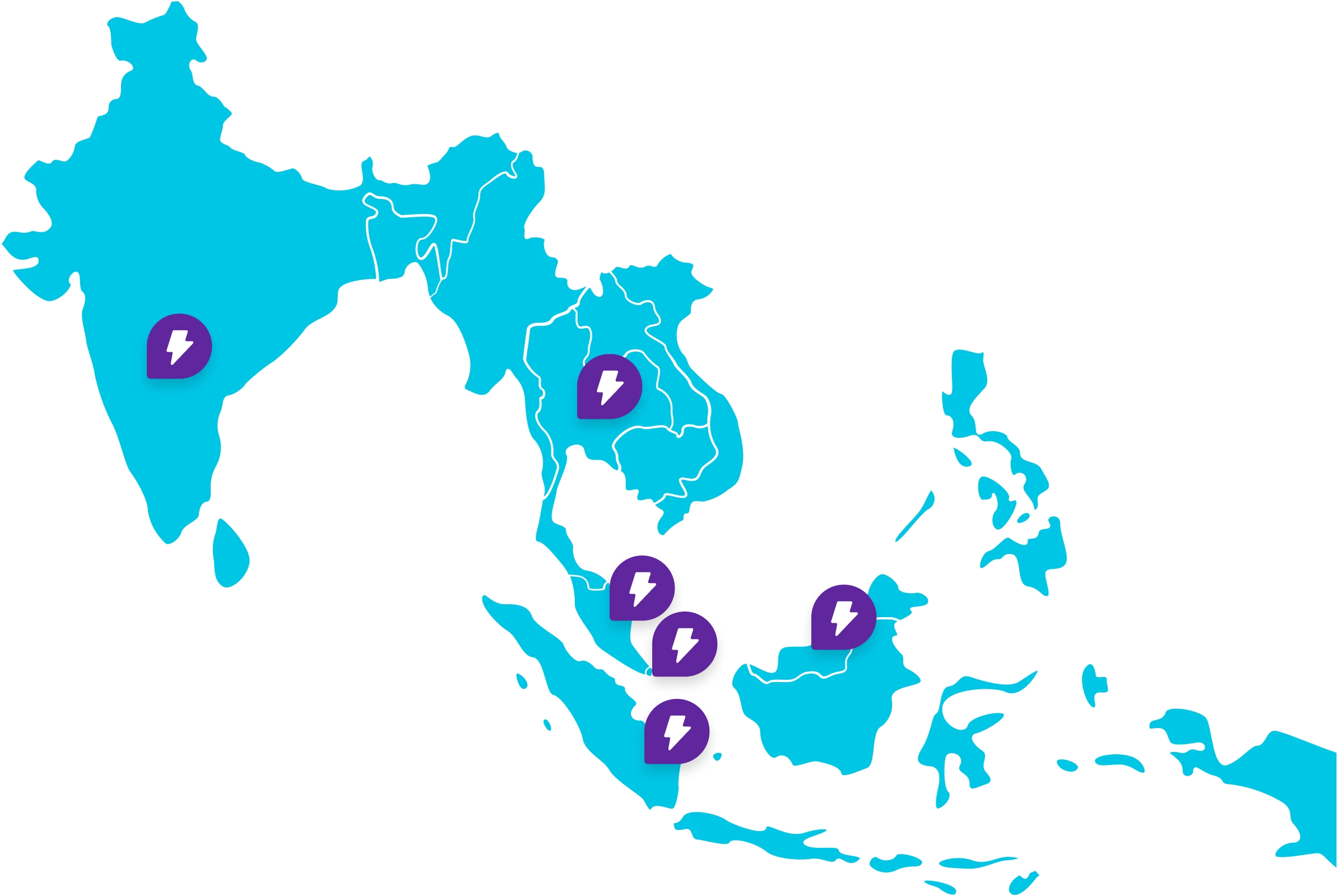 EV charging points across Malaysia, India, and Thailand