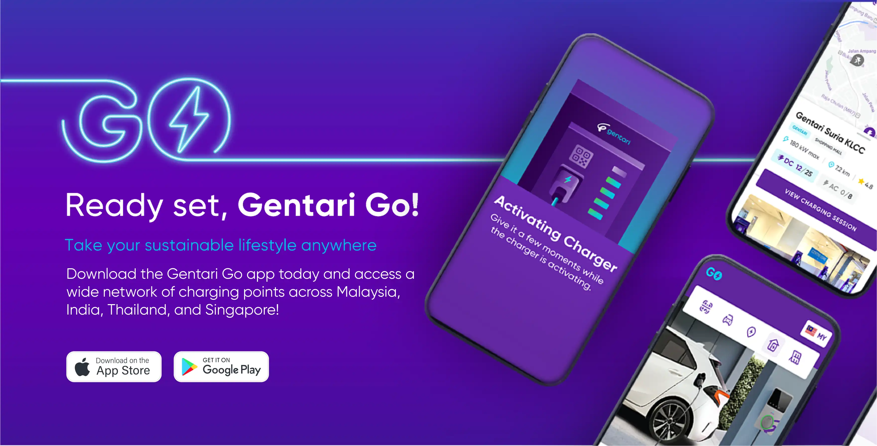From city hubs to highways, access Gentari EV chargers across Malaysia, India and Thailand — wherever you travel.