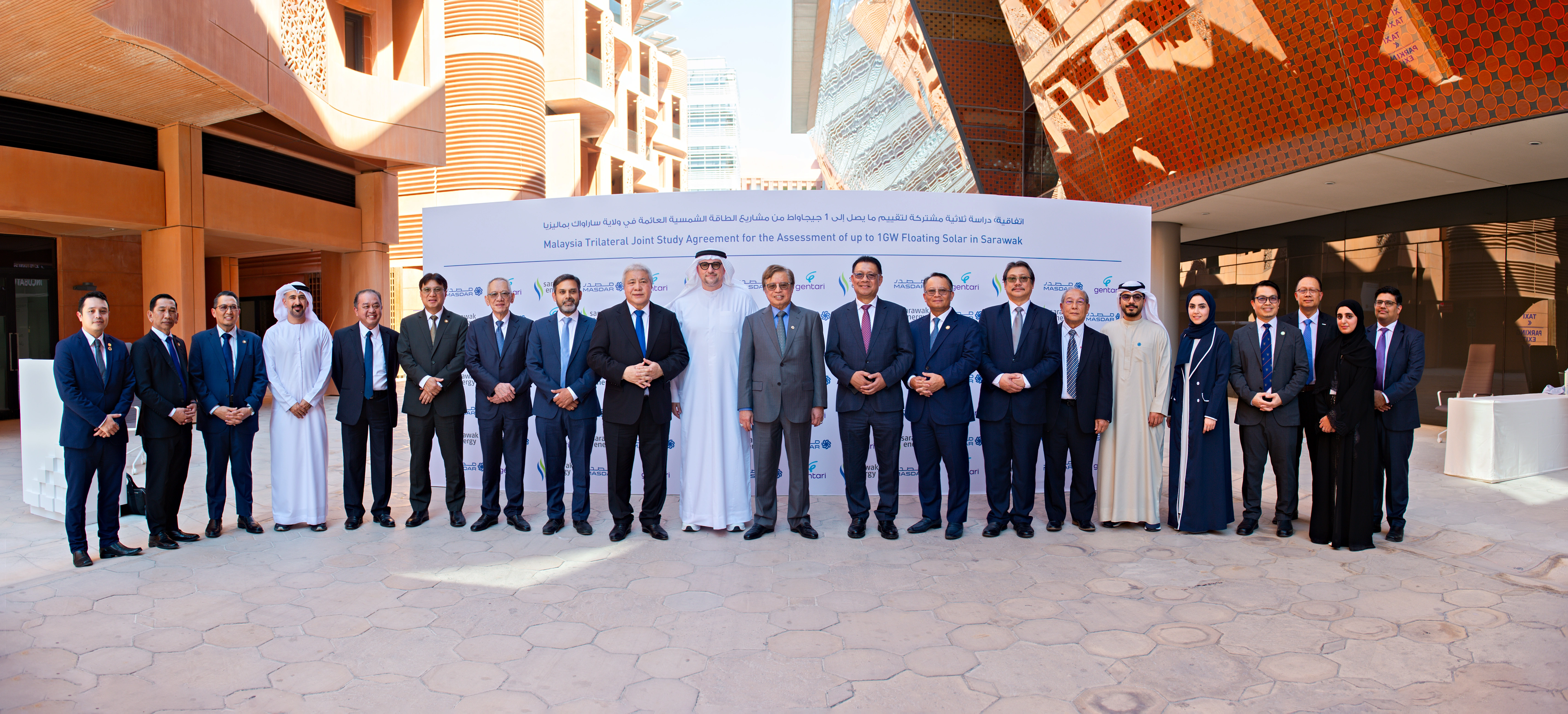 The large-scale floating solar PV project marks a significant step towards expanding renewable energy capacity in Sarawak state and supporting Malaysia's clean energy ambitions. The exchange of documents was held at Masdar’s head office in Abu Dhabi between Mohamed Jameel Al Ramahi, Masdar Chief Executive Officer, Datuk Sharbini Suhaili, Sarawak Energy Group Chief Executive Officer and Sushil Purohit, Gentari Chief Executive Officer. The ceremony was witnessed by the Right Honourable Datuk Patinggi Tan Sri (Dr) Abang Haji Abdul Rahman Zohari Tun Abang Haji Openg, Premier of Sarawak.